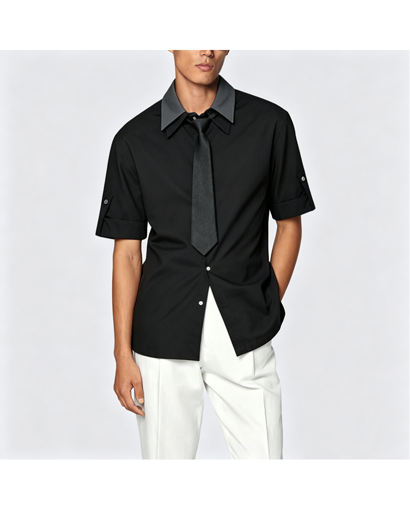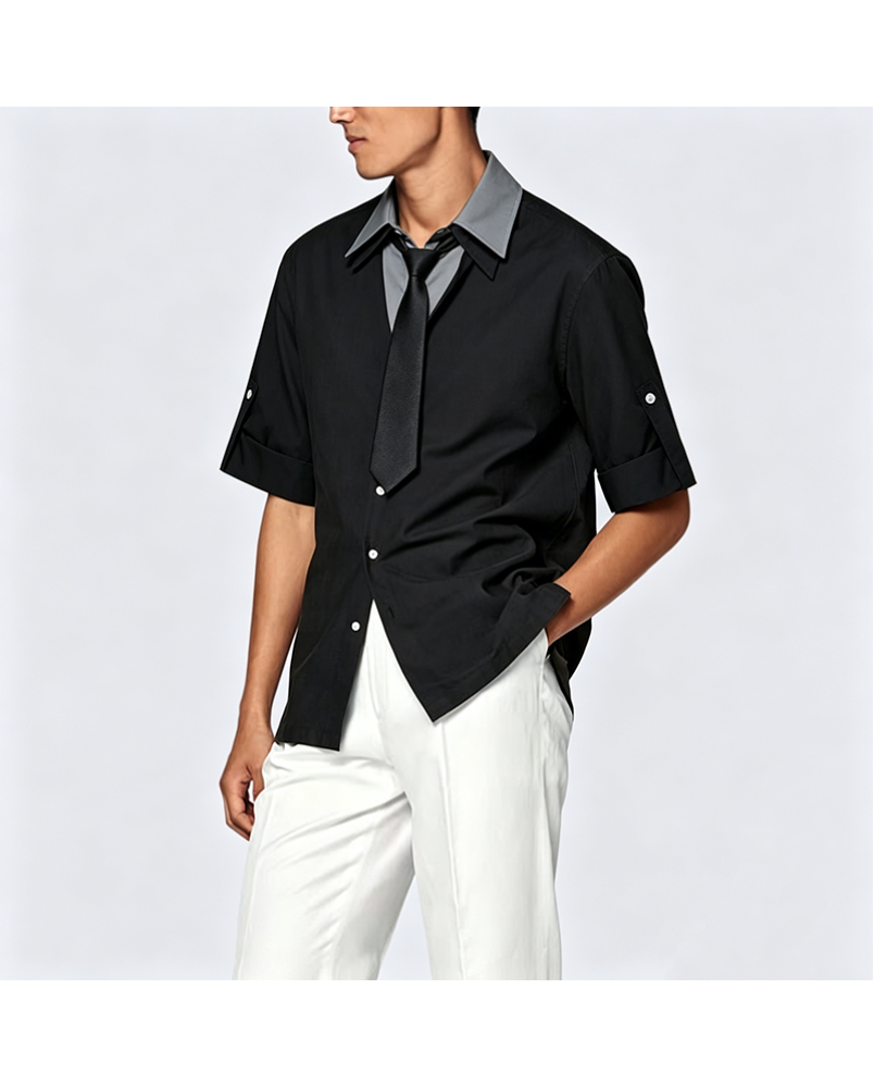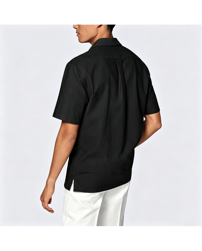 Available in a range of sizes from M to 3XL to accommodate different body types. The classic black color option is versatile and easy to pair with other wardrobe pieces. With a focus on balancing practicality and comfort, this shirt serves as a reliable foundational item for any daily wardrobe.
