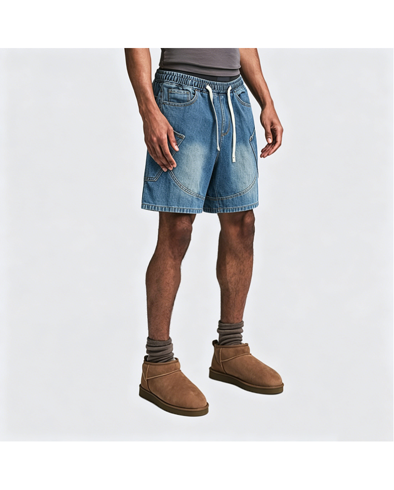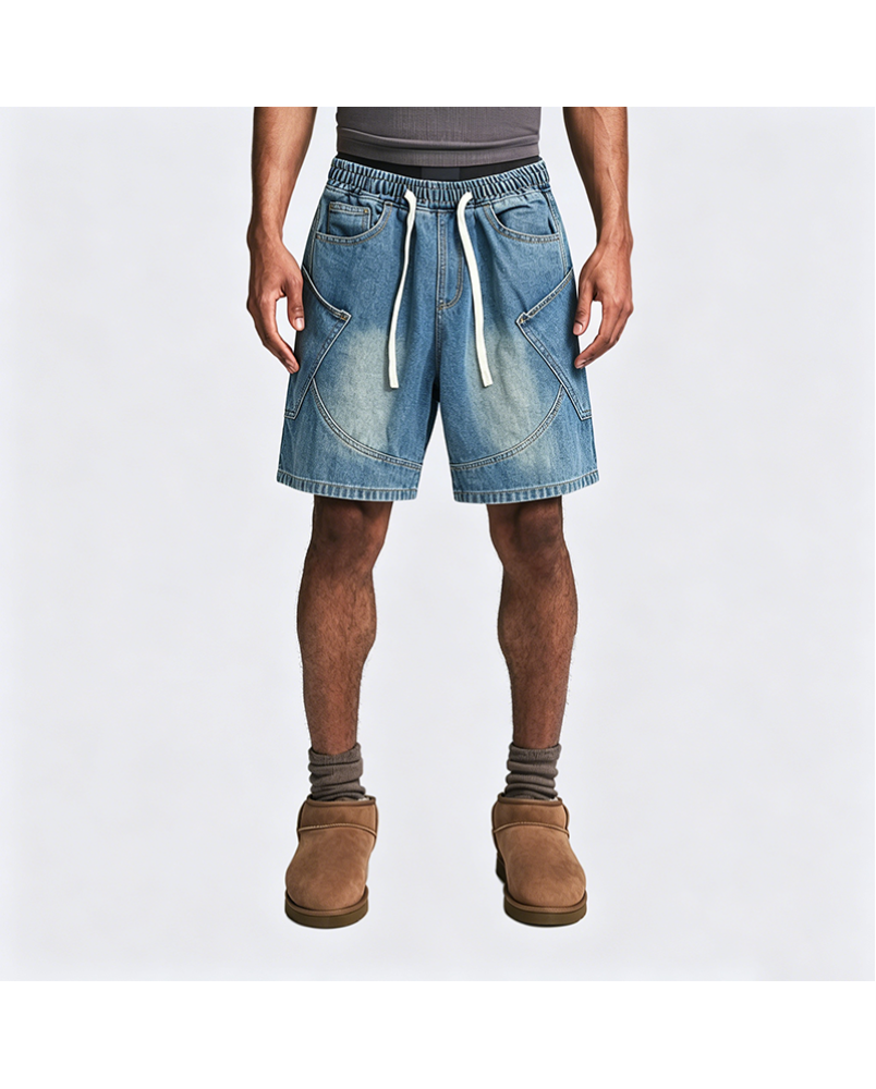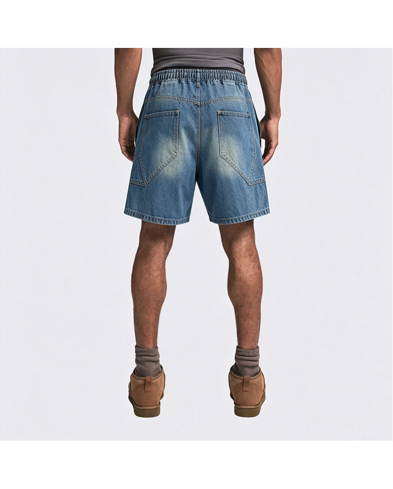 These American retro denim shorts are crafted from classic denim fabric and finished with a washing process, delivering a distinctive vintage appeal. The loose straight-leg wide cut, combined with a cropped length and mid-rise waist, creates a casual and effortless style.