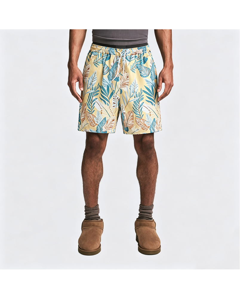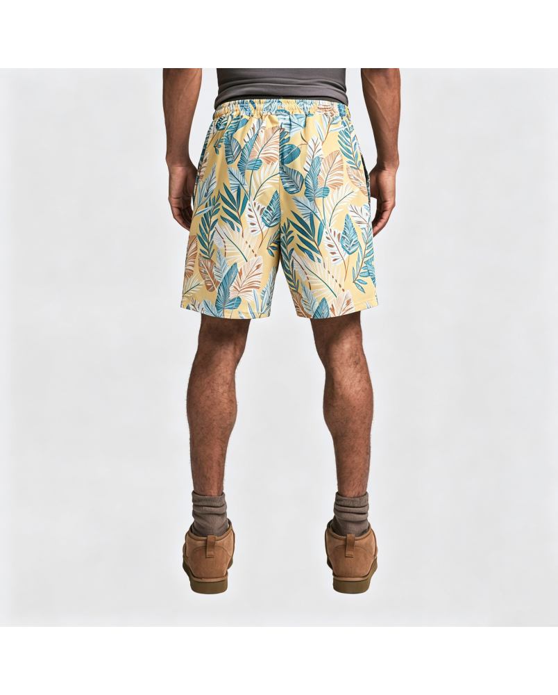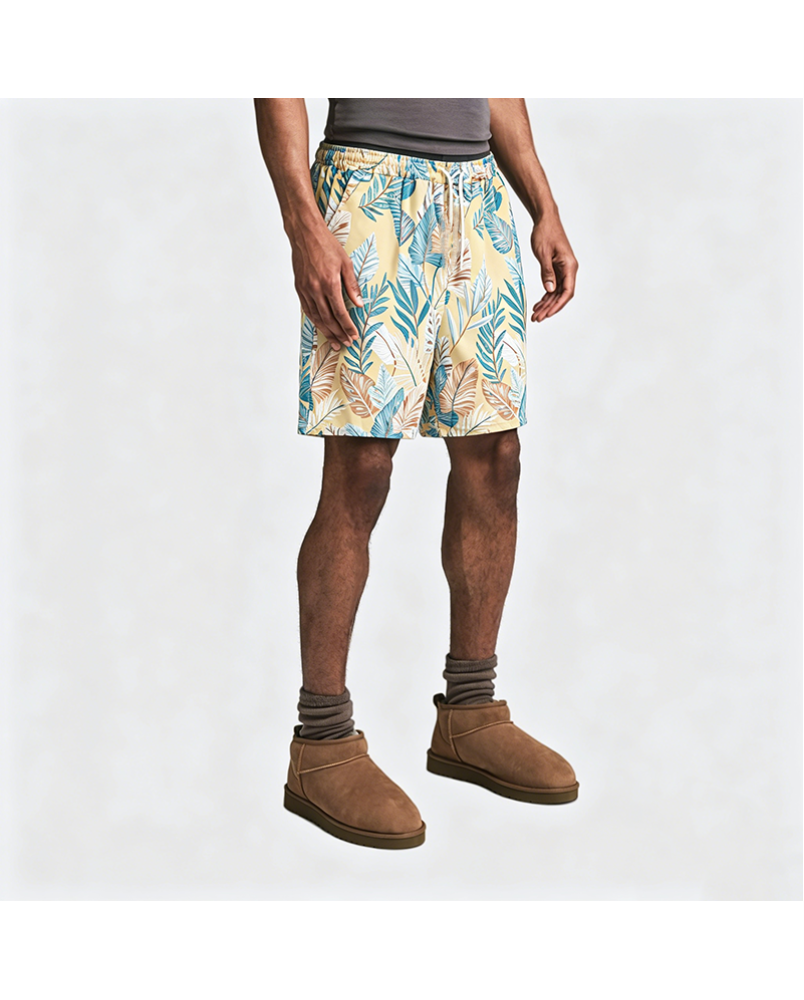 These men's Hawaiian shorts are designed for summer leisure and vacation. The loose-fit, mid-thigh length with a straight leg opening allows for ease of movement and suits various body types.