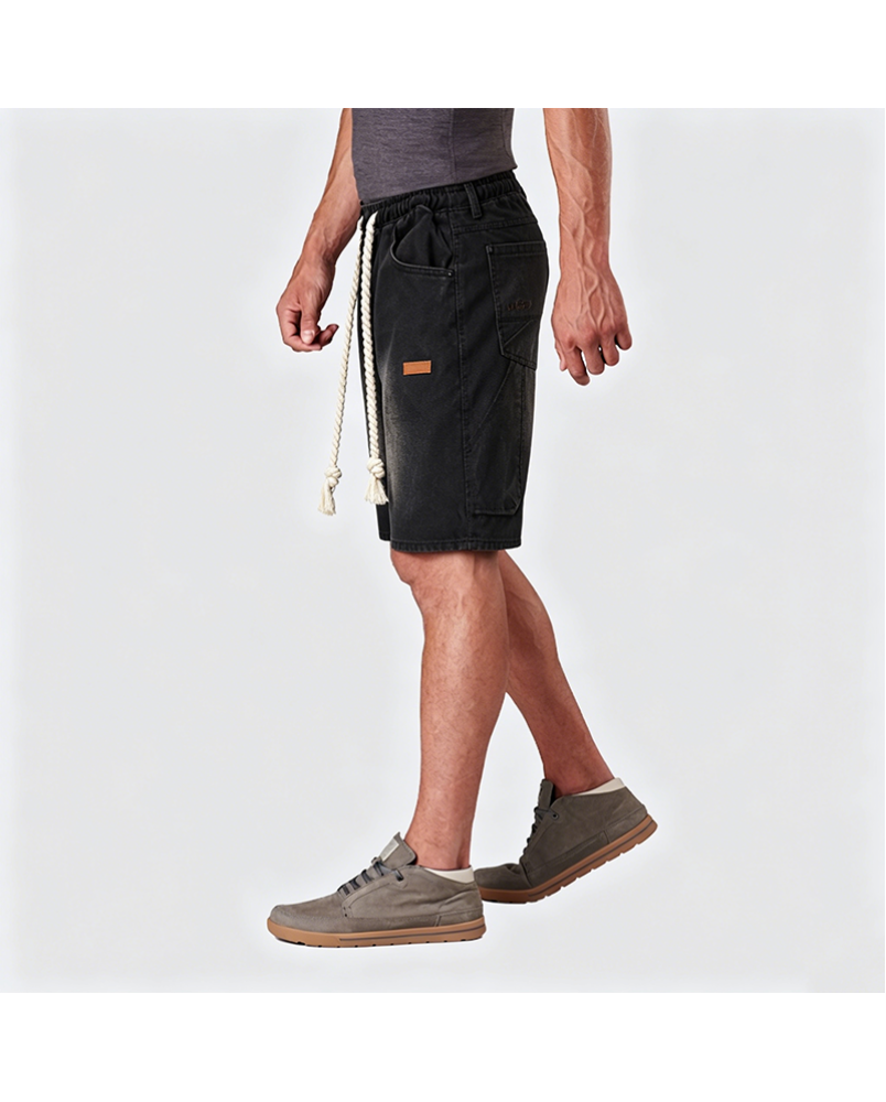 The hemp rope drawstring at the waist adds an American street-style touch while allowing easy adjustment. The mid-rise design and straight hem contribute to a casual, effortless look.
