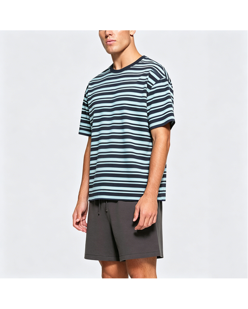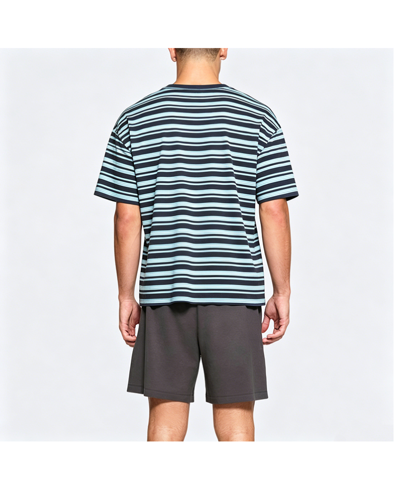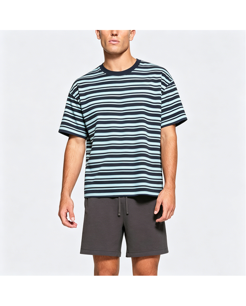 Japanese Style Color-Block Striped Short-Sleeve T-Shirt
