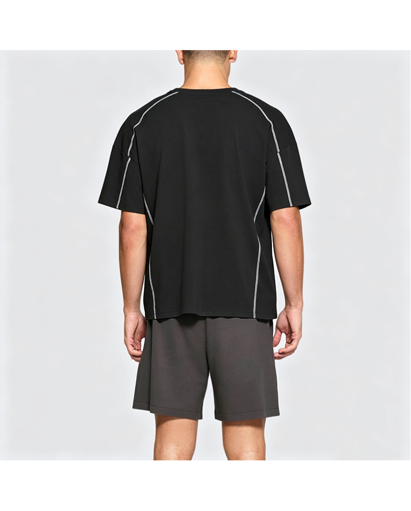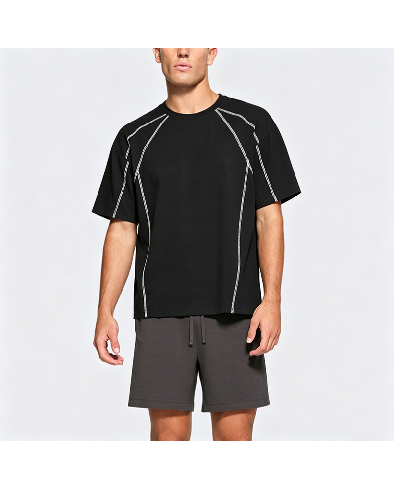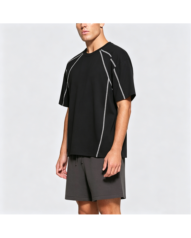 American Style Topstitch Print Loose Short Sleeve T-Shirt
