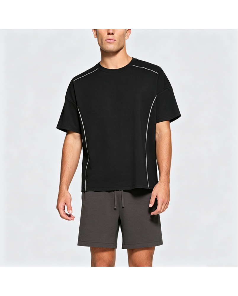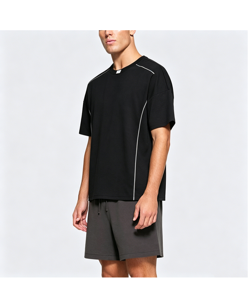 American Retro Spliced Line Short Sleeve T-Shirt