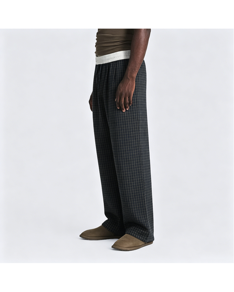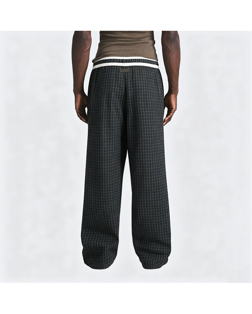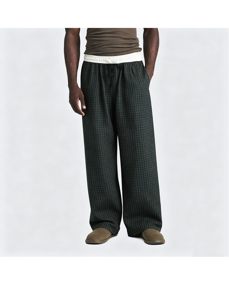 American Retro Plaid Color-Blocking Wide-Leg Pants