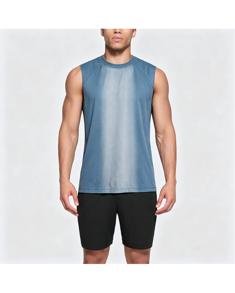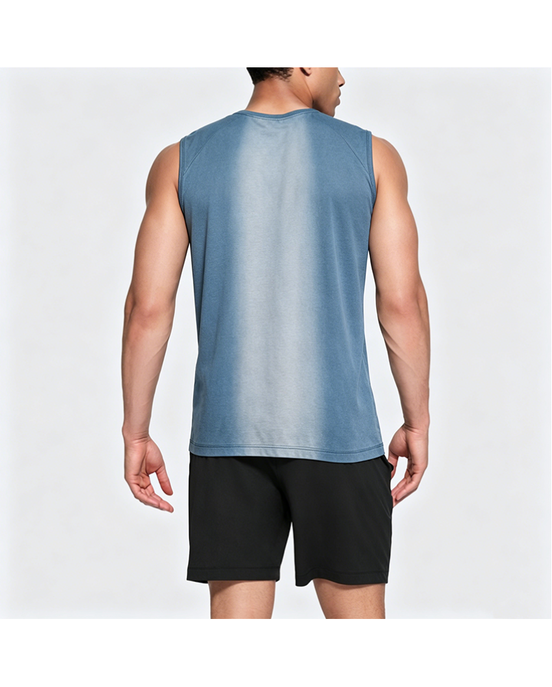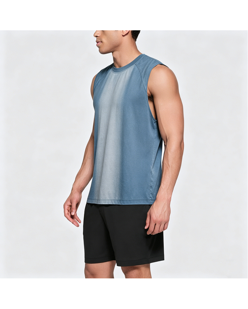 Washed Gradient Sleeveless Tank Top Loose Letter Embroidery Sport T-Shirt