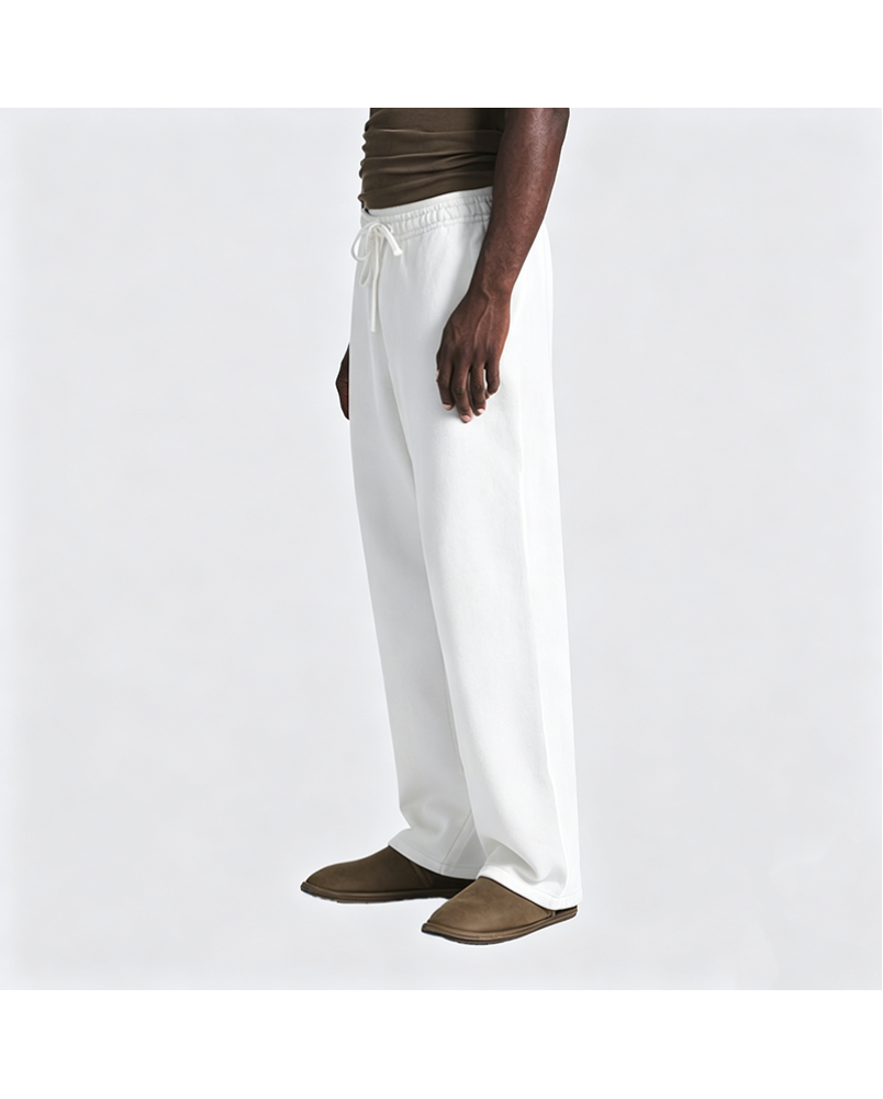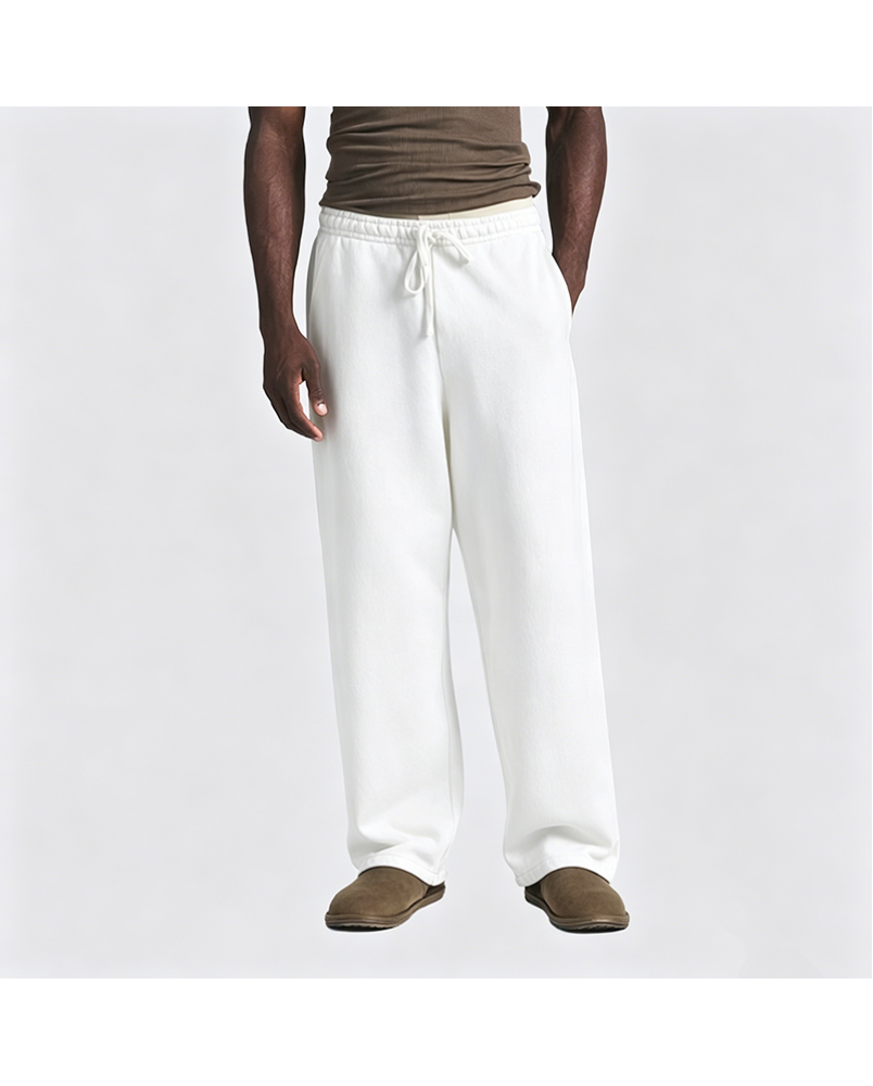 Build: Loose straight-cut silhouette with wide-leg cuffs.
